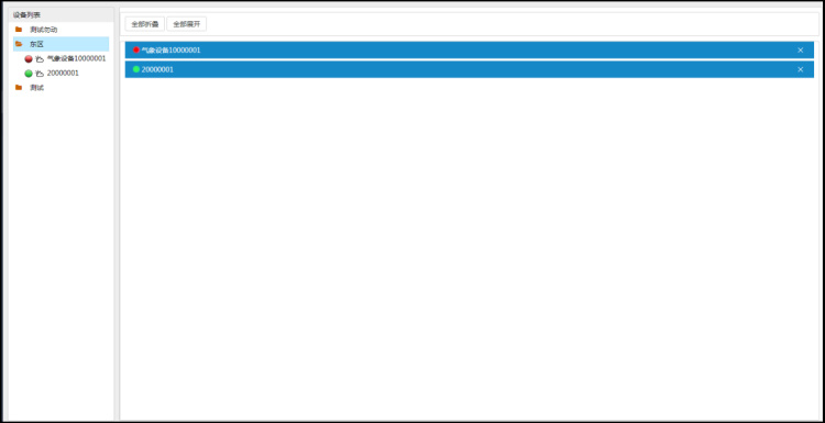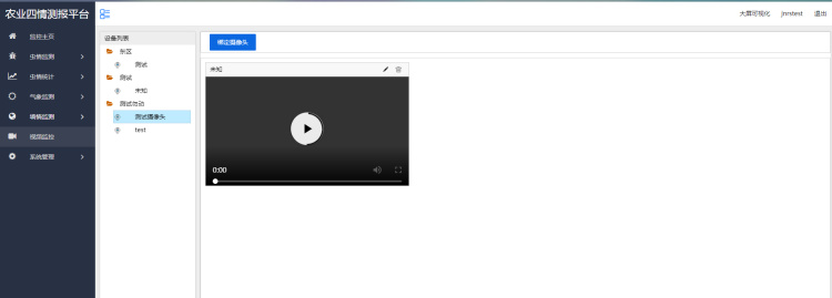 監(jiān)控主頁顯示設備列表、大屏可視化、地圖展示等菜單信息。顯示土壤墑情、蟲情、氣象監(jiān)測圖標及設備的運行狀態(tài)。