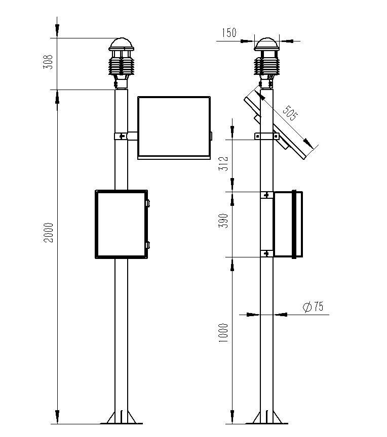 5.兩米碳鋼支架,頂部無(wú)需法蘭盤可直接套接傳感器